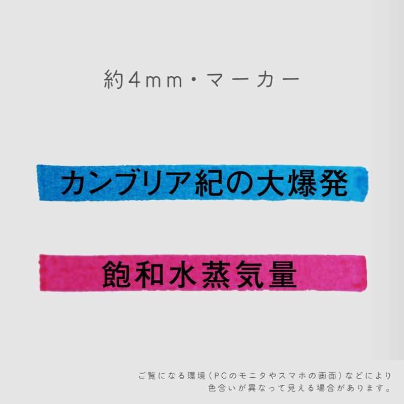 マーカーを引いた後でも文字が読みやすい!ブルー&ピンク。(※緑色、赤色と比較して)また、裏写りしにくい水性。